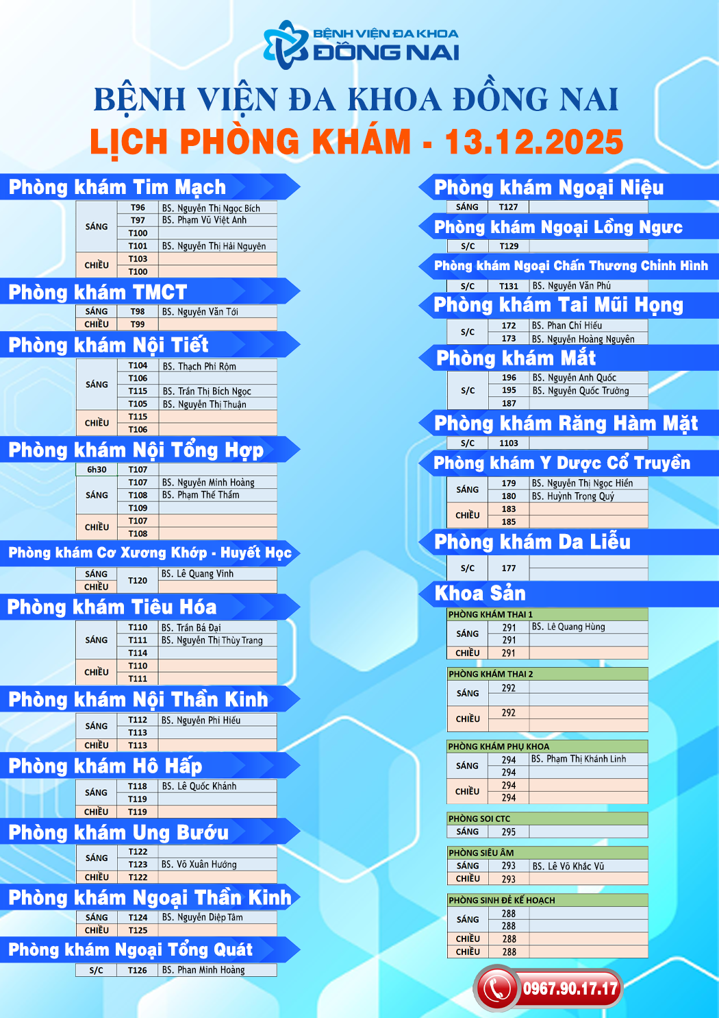 Bài liên quan Lịch khám bệnh ngày 14/12/2025 (10.12.2025 08:14) Lịch khám bệnh ngày 12/12/2025 (08.12.2025 10:15) Lịch khám bệnh ngày 11/12/2025 (08.12.2025 10:13) Lịch khám bệnh ngày 10/12/2025 (08.12.2025 10:11) Lịch khám bệnh ngày 09/12/2025 (08.12.2025 10:05) Lịch khám bệnh ngày 08/12/2025 (08.12.2025 10:02) Lịch khám bệnh ngày 07/12/2025 (05.12.2025 08:05) Lịch khám bệnh ngày 06/12/2025 (05.12.2025 08:02) Lịch khám bệnh ngày 05/12/2025 (30.11.2025 08:48) Lịch khám bệnh ngày 04/12/2025 (30.11.2025 08:47) Lịch khám bệnh ngày 03/12/2025 (30.11.2025 08:47) Lịch khám bệnh ngày 02/12/2025 (30.11.2025 08:46) Lịch khám bệnh ngày 01/12/2025 (30.11.2025 08:46) Lịch khám bệnh ngày 28/11/2025 (23.11.2025 09:10) Lịch khám bệnh ngày 27/11/2025 (23.11.2025 09:09) Lịch khám bệnh ngày 26/11/2025 (23.11.2025 09:08) Lịch khám bệnh ngày 25/11/2025 (23.11.2025 09:07) Lịch khám bệnh ngày 24/11/2025 (23.11.2025 09:03) Lịch khám bệnh ngày 23/11/2025 (23.11.2025 09:00) Lịch khám bệnh ngày 22/11/2025 (23.11.2025 08:53) 12345678910... DỊCH VỤ Phòng khám chuyên gia Khám và điều trị bệnh Tiêm chủng vắc xin Điều trị nội trú Tầm soát ung thư Khám tổng quát tầm soát bệnh Khám sức khỏe công ty Khám sức khỏe tầm soát bệnh TIN NỔI BẬT Danh sách học viên hoàn thành thực hành tại BVĐK Đồng Nai từ ngày 02.10.2025 đến 07.10.2025 Danh sách người hoàn thành thực hành tại bệnh viện Đa khoa Đồng Nai từ 20/8/2025 đến 10/9/2025 Danh sách Đăng ký thực hành tại bệnh viện Đa khoa Đồng Nai tháng 10 năm 2025 Danh sách học viên hoàn thành thực hành tại BVĐK Đồng Nai từ ngày 06.11.2025 đến 05.12.2025 Danh sách học viên đăng kí thực hành KBCB tháng 12.2025 Danh sách hoàn thành quá trình thực hành tại BVĐK Đồng Nai từ ngày 09.10.2025 đến 06.11.2025 Thông báo tiếp nhận máu tại điểm hiến máu tình nguyện cố định Bệnh viện Đa khoa Đồng Nai Danh sách Đăng ký thực hành tại bệnh viện Đa khoa Đồng Nai tháng 11 năm 2025 Danh sách hoàn thành quá trình thực hành từ ngày 14.10.2025 đến 29.10.2025 Chào bảng giá gói thầu mua sắm thiết bị đầu cuối phục vụ triển khai Bệnh án điện tử (EMR) của Bệnh viện đa khoa Đồng Nai