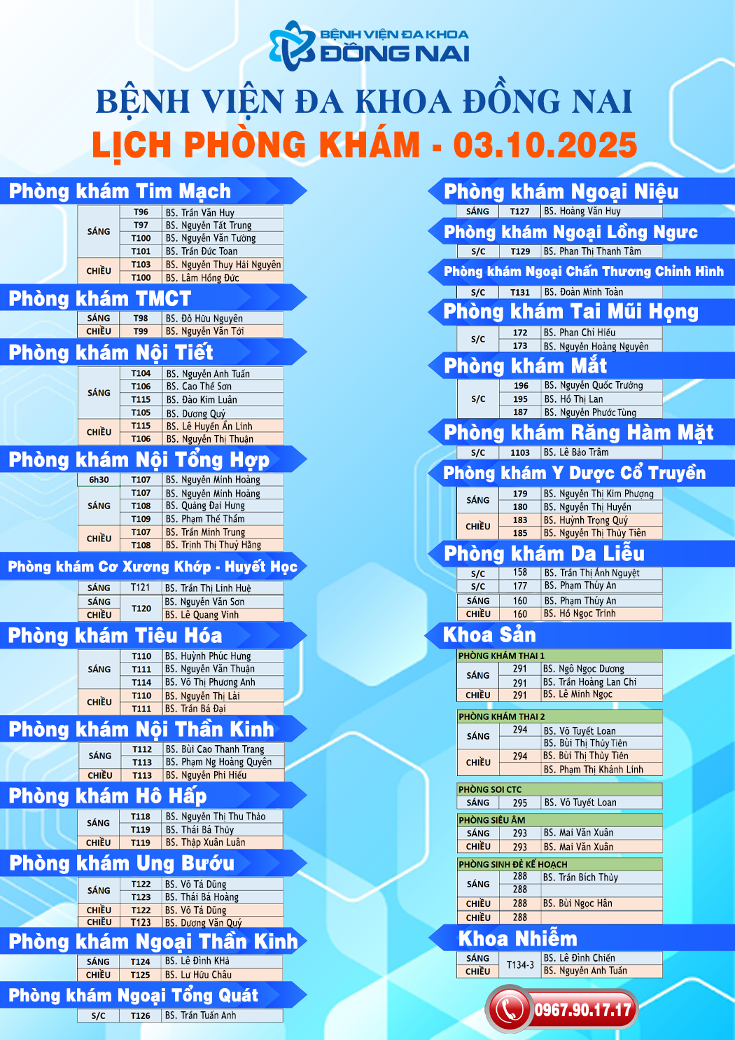 Lịch khám bệnh ngày 03/10/2025