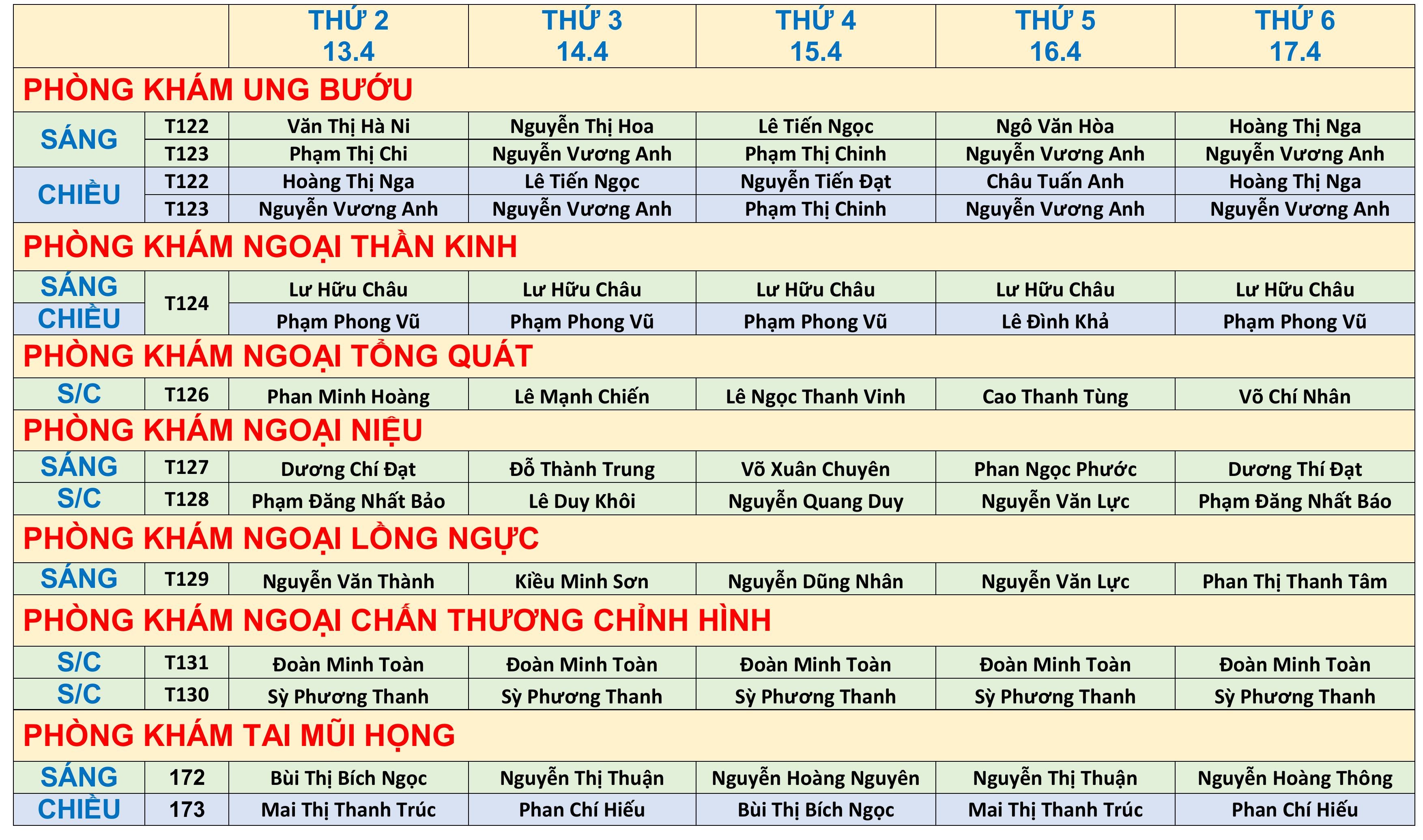 Bài liên quan Lịch khám bệnh ngày 13/04-17/04/2026 (13.04.2026 09:21) Lịch khám bệnh ngày 11/4-12/4/2026 (10.04.2026 09:28) Lịch khám bệnh ngày 04/04-05/04/2026 (03.04.2026 09:29) Lịch khám bệnh ngày 30/03 - 03/04/2026 (30.03.2026 09:45) Lịch khám bệnh ngày 28-29/03/2026 (27.03.2026 08:10) Lịch khám bệnh ngày 23-27/03/2026 (22.03.2026 06:59) Lịch khám bệnh ngày 21-22/03/2026 (18.03.2026 10:08) Lịch khám bệnh ngày 16-20/03/2026 (16.03.2026 09:51) Lịch khám bệnh ngày 09-13/03/2026 (09.03.2026 09:57) Lịch khám bệnh ngày 02-06/03/2026 (03.03.2026 08:42) Lịch khám bệnh ngày 10/02/2026 (09.02.2026 10:48) Lịch khám bệnh ngày 09/02/2026 (09.02.2026 10:46) Lịch khám bệnh ngày 08/02/2026 (09.02.2026 09:59) Lịch khám bệnh ngày 07/02/2026 (06.02.2026 07:55) Lịch khám bệnh ngày 06/02/2026 (02.02.2026 10:41) Lịch khám bệnh ngày 05/02/2026 (02.02.2026 10:41) Lịch khám bệnh ngày 04/02/2026 (02.02.2026 10:40) Lịch khám bệnh ngày 03/02/2026 (02.02.2026 10:40) Lịch khám bệnh ngày 02/02/2026 (02.02.2026 10:40) Lịch khám bệnh ngày 01/02/2026 (01.02.2026 10:27) 12345678910... DỊCH VỤ Phòng khám chuyên gia Khám và điều trị bệnh Tiêm chủng vắc xin Điều trị nội trú Tầm soát ung thư Khám tổng quát tầm soát bệnh Khám sức khỏe công ty Khám sức khỏe tầm soát bệnh TIN NỔI BẬT THÔNG BÁO BỆNH VIỆN ĐA KHOA ĐỒNG NAI ĐÁP ỨNG YÊU CẦU LÀ CƠ SỞ THỰC HÀNH KHÁM BỆNH CHỮA BỆNH 15.9.2025 Danh sách người hoàn thành thực hành tại BVĐK Đồng Nai tháng 04.2026 Danh sách Đăng ký thực hành tại bệnh viện Đa khoa Đồng Nai tháng 04 năm 2026 Danh sách người hoàn thành quá trình thực hành 06.03.2026 Danh sách đang ký thực hành tại bệnh viện đa khoa Đồng Nai tháng 02 năm 2026 Danh sách Đăng ký thực hành tại bệnh viện Đa khoa Đồng Nai tháng 03 năm 2026 Thông báo BVĐK Đồng Nai là Cơ sở khám bệnh, chữa bệnh đáp ứng yêu cầu là cơ sở hướng dẫn thực hành 11.02.2026 Danh sách hoàn thành thực hành tại BVĐK Đồng Nai tháng 02.2026 DS hoàn thành quá trình thực hành từ ngày 30/12/2025 đến ngày 08/01/2026 Danh sách thực hành tại Bệnh viện Đa khoa Đồng Nai tháng 01 năm 2026 (Bổ sung)