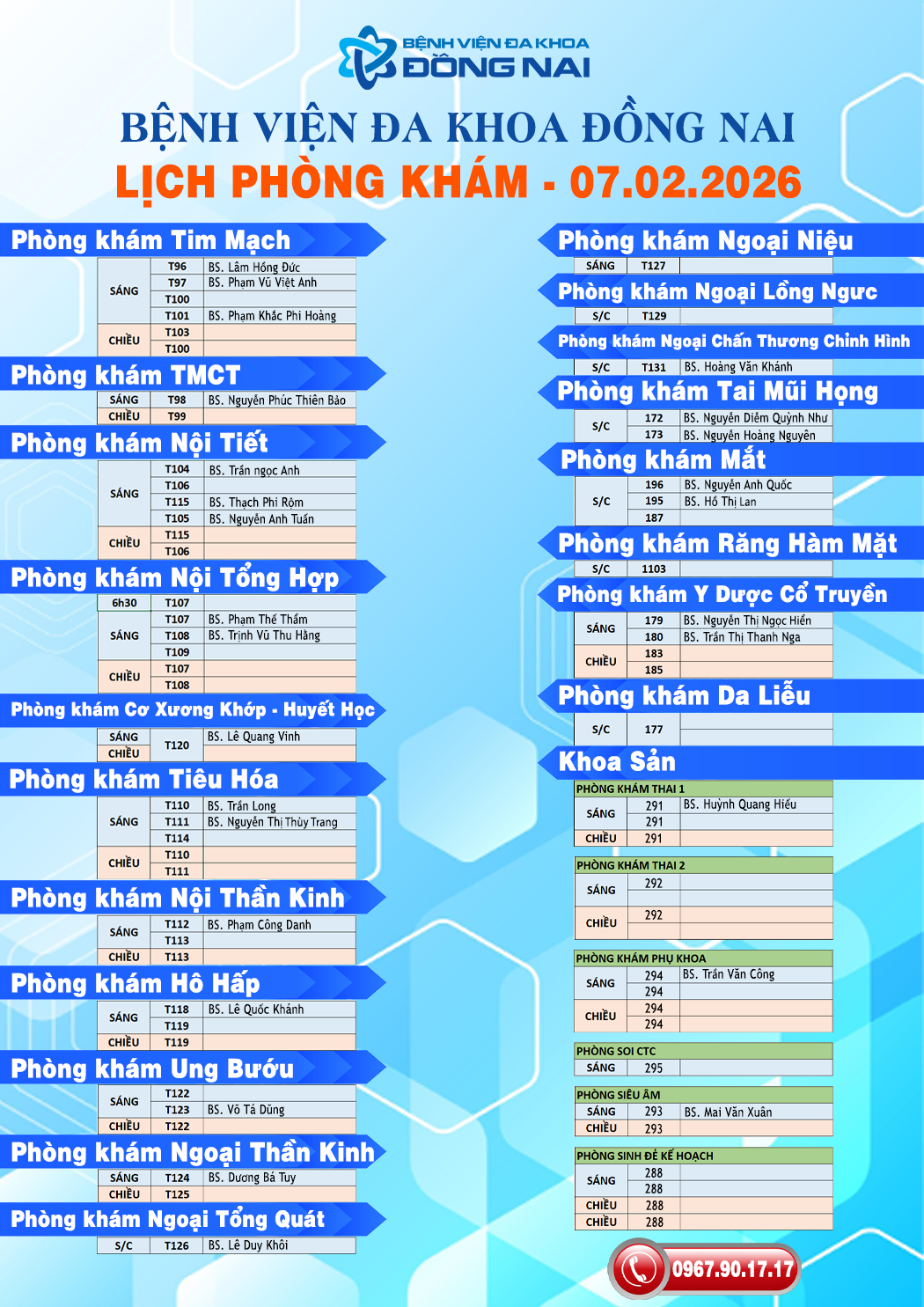 Bài liên quan Lịch khám bệnh ngày 10/02/2026 (09.02.2026 10:48) Lịch khám bệnh ngày 09/02/2026 (09.02.2026 10:46) Lịch khám bệnh ngày 08/02/2026 (09.02.2026 09:59) Lịch khám bệnh ngày 06/02/2026 (02.02.2026 10:41) Lịch khám bệnh ngày 05/02/2026 (02.02.2026 10:41) Lịch khám bệnh ngày 04/02/2026 (02.02.2026 10:40) Lịch khám bệnh ngày 03/02/2026 (02.02.2026 10:40) Lịch khám bệnh ngày 02/02/2026 (02.02.2026 10:40) Lịch khám bệnh ngày 01/02/2026 (01.02.2026 10:27) Lịch khám bệnh ngày 31/01/2026 (01.02.2026 10:27) Lịch khám bệnh ngày 30/01/2026 (01.02.2026 10:27) Lịch khám bệnh ngày 29/01/2026 (01.02.2026 10:26) Lịch khám bệnh ngày 28/01/2026 (01.02.2026 10:26) Lịch khám bệnh ngày 27/01/2026 (01.02.2026 10:25) Lịch khám bệnh ngày 26/01/2026 (01.02.2026 10:25) Lịch khám bệnh ngày 25/01/2026 (24.01.2026 08:32) Lịch khám bệnh ngày 24/01/2026 (24.01.2026 08:28) Lịch khám bệnh ngày 23/01/2026 (19.01.2026 11:25) Lịch khám bệnh ngày 22/01/2026 (19.01.2026 10:46) Lịch khám bệnh ngày 21/01/2026 (19.01.2026 10:38) 12345678910... DỊCH VỤ Phòng khám chuyên gia Khám và điều trị bệnh Tiêm chủng vắc xin Điều trị nội trú Tầm soát ung thư Khám tổng quát tầm soát bệnh Khám sức khỏe công ty Khám sức khỏe tầm soát bệnh TIN NỔI BẬT THÔNG BÁO BỆNH VIỆN ĐA KHOA ĐỒNG NAI ĐÁP ỨNG YÊU CẦU LÀ CƠ SỞ THỰC HÀNH KHÁM BỆNH CHỮA BỆNH 15.9.2025 Danh sách hoàn thành thực hành tại BVĐK Đồng Nai tháng 02.2026 DS hoàn thành quá trình thực hành từ ngày 30/12/2025 đến ngày 08/01/2026 Danh sách thực hành tại Bệnh viện Đa khoa Đồng Nai tháng 01 năm 2026 (Bổ sung) Danh sách Đăng ký thực hành dược tại bệnh viện Đa khoa Đồng Nai tháng 01.2026 Danh sách đăng kí thực hành tại BVĐK Đồng Nai tháng 01/2026 Danh sách học viên hoàn thành thực hành tại BVĐK Đồng Nai từ ngày 06.11.2025 đến 05.12.2025 Danh sách học viên đăng kí thực hành KBCB tháng 12.2025 Danh sách hoàn thành quá trình thực hành tại BVĐK Đồng Nai từ ngày 09.10.2025 đến 06.11.2025 Thông báo tiếp nhận máu tại điểm hiến máu tình nguyện cố định Bệnh viện Đa khoa Đồng Nai